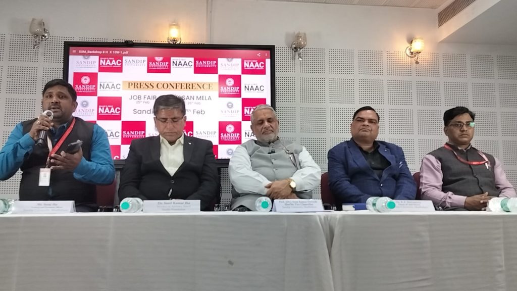 Madhubani: संदीप यूनिवर्सिटी, सिजॉल (मधुबनी) में आयोजित होने वाले बहुप्रतीक्षित ‘रोज़गार मेला, किसान मेला व संदीपोत्सव के सफल एवं गरिमामय आयोजन को लेकर विश्वविद्यालय परिसर में माननीय कुलपति प्रो. (डॉ०) अरुण कुमार द्विवेदी की अध्यक्षता में एक महत्वपूर्ण प्रेस वार्ता संपन्न हुई.