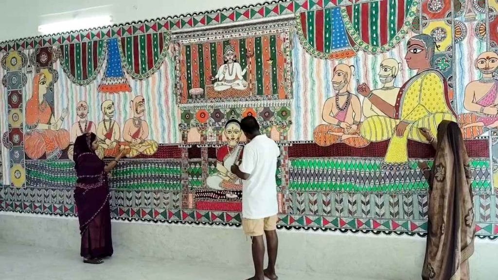 सहरसा में मधुबनी के कलाकार कर रहे पेंटिंग