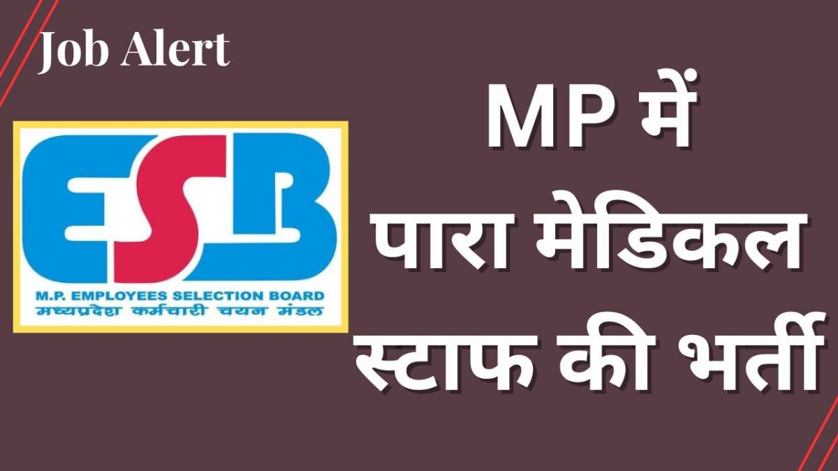 Bhopal: मध्यप्रदेश में पारा मेडिकल के 752 पदों पर भर्ती का नोटिफिकेशन जारी किया गया है. मध्यप्रदेश कर्मचारी चयन बोर्ड ने ग्रुप-5 संयुक्त भर्ती परीक्षा (CRE) 2025 के तहत पारा मेडिकल के 752 पदों पर भर्ती का नोटिफिकेशन जारी किया है. इच्छुक उम्मीदवार ऑफिशियल वेबसाइट esb.mp.gov.in पर जाकर ऑनलाइन आवेदन कर सकते हैं.