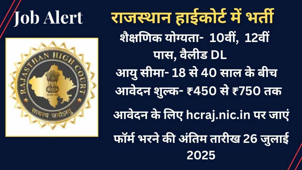 Patna: राजस्थान हाई कोर्ट में 5728 पदों पर भर्ती निकली है. उम्मीदवार ऑफिशियल वेबसाइट hcraj.nic.in पर जाकर आवेदन कर सकते हैं. यह भर्ती चपरासी और ड्राइवर के पद के लिए निकली है. इसमें 10वीं और 12वीं पास उम्मीदवार फॉर्म भर सकते हैं.