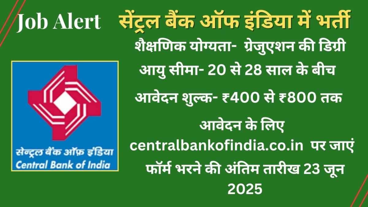 सेंट्रल बैंक ऑफ इंडिया में नौकरी का मौका, अप्रेंटिस के 4500 पदों पर निकली वैकेंसी