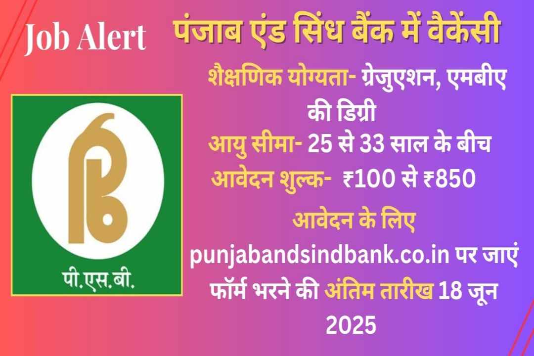 पंजाब एंड सिंध बैंक में वैकेंसी, रिलेशनशिप मैनेजर के पदों पर होगी भर्ती