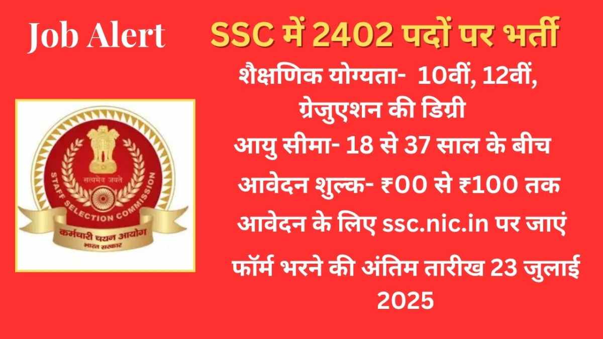 SSC ने 2402 पदों पर निकाली भर्ती, सरकारी नौकरी का सुनहरा मौका, सैलरी 60 हजार से अधिक
