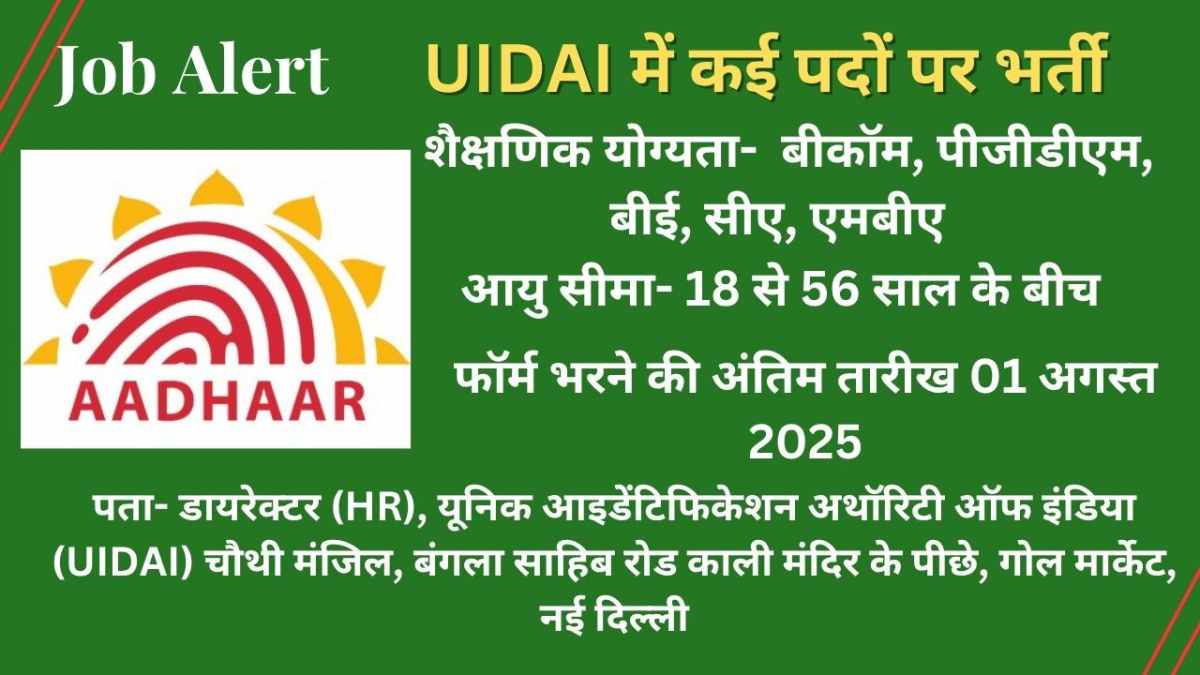 UIDAI में कई पदों पर वैकेंसी, सेक्शन, टेक्निकल, अकाउंट ऑफिसर समेत कई पदों पर भर्ती