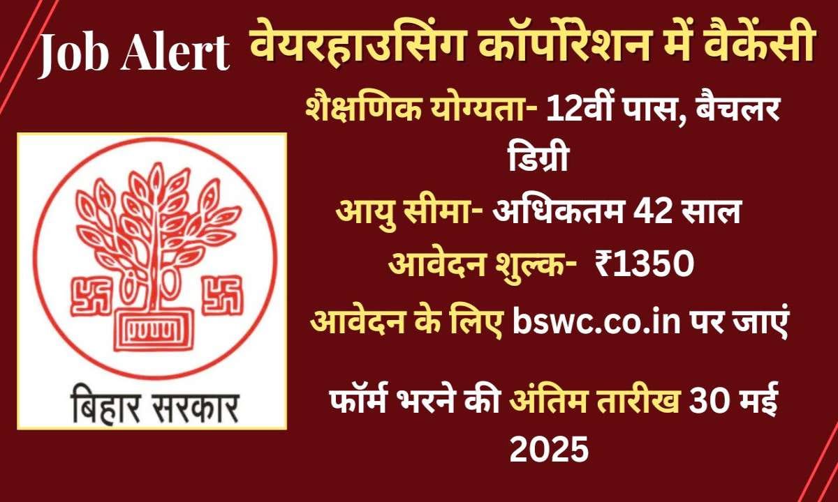 बिहार स्टेट वेयरहाउसिंग कॉर्पोरेशन में भर्ती का मौका, 30 मई तक कर लें आवेदन