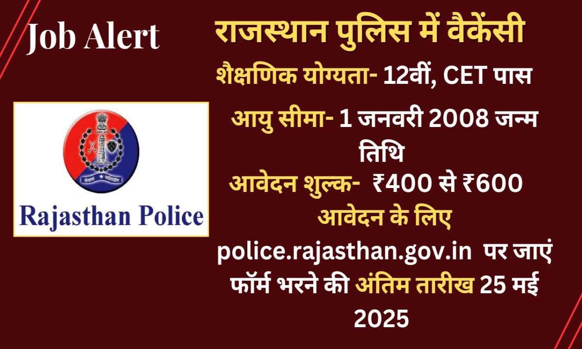 राजस्थान पुलिस कांस्टेबल भर्ती, 12वीं पास को मौका, जल्द करें अप्लाई