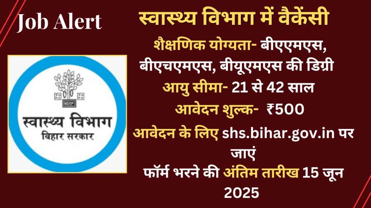 बिहार स्वास्थ्य विभाग में 2500 पदों पर वैकेंसी, 15 जून है आवेदन की अंतिम तारीख