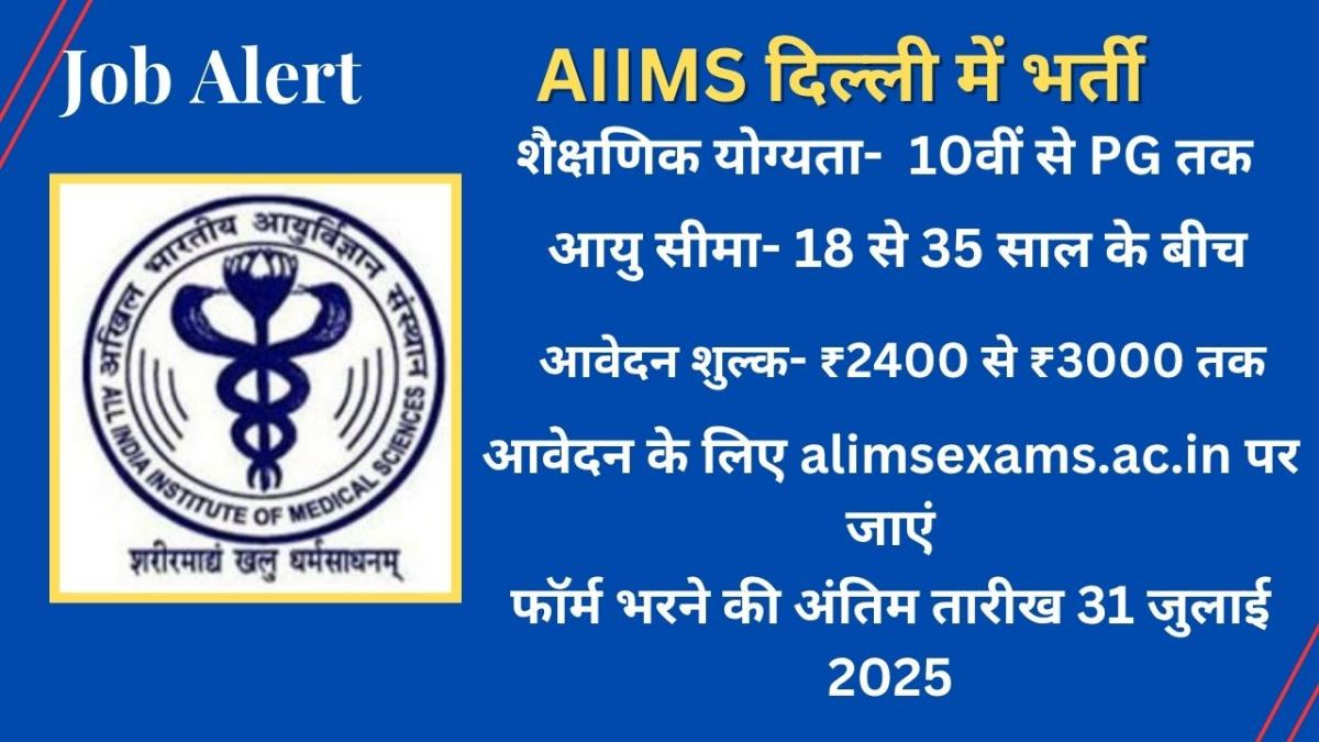 उम्मीदवारों के चयन की प्रक्रिया के तहत पहले रिटन एग्जाम होगा उसमें पास होने के बाद स्किल टेस्ट होगा और फिर फाइनल लिस्ट जारी होगी. दिल्ली एम्स में ग्रुप B और C पदों के लिए फॉर्म भरने की अंतिम तारीख 31 जुलाई 2025 है.