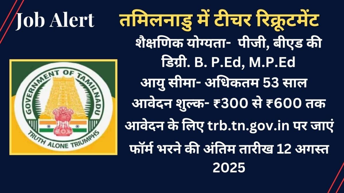 तमिलनाडु में टीचर के लिए उम्मीदवारों का चयन ओएमआर बेस्ड एग्जाम के बेसिस पर होगी. फॉर्म भरने की अंतिम तारीख 12 अगस्त 2025 है.